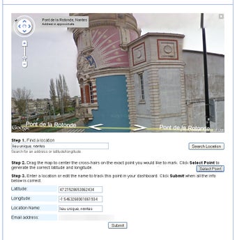 Le service s'adresse aux possesseurs d'un compte Google. Suite à l'authentification, 3 options sont disponibles: rechercher une adresse, entrer des coordonnées géographiques ou naviguer vers le lieu de son choix grâce à la carte Google Maps.